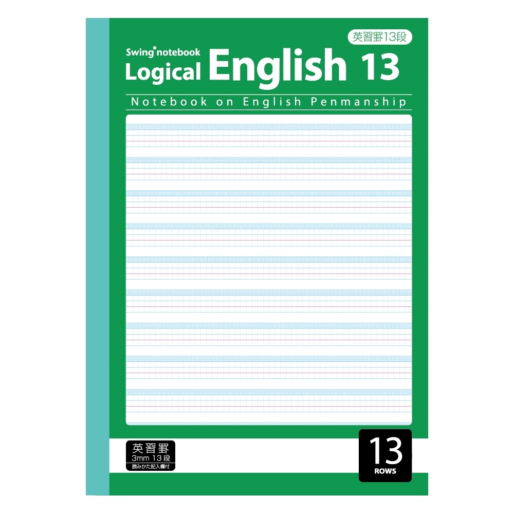 英習罫本文に、読みかた記入スペースがあります!表4には、フォニックス基本発音表付き!英習罫本文に、タテのガイド罫があります!バランスのよい、きれいな英文が書けます!消しゴムでサラりと消しやすい本文紙を使用!!