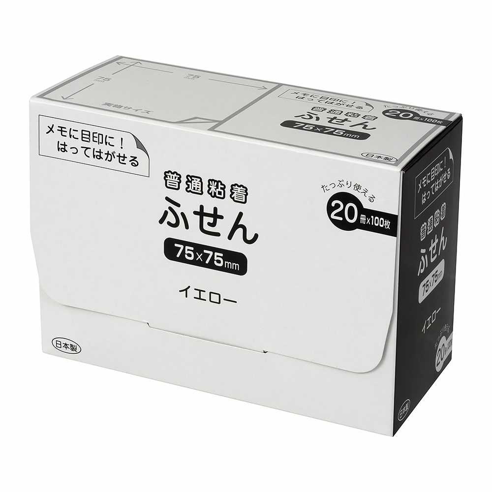 パッケージ付箋 75x75mm・20冊パック/イエロー