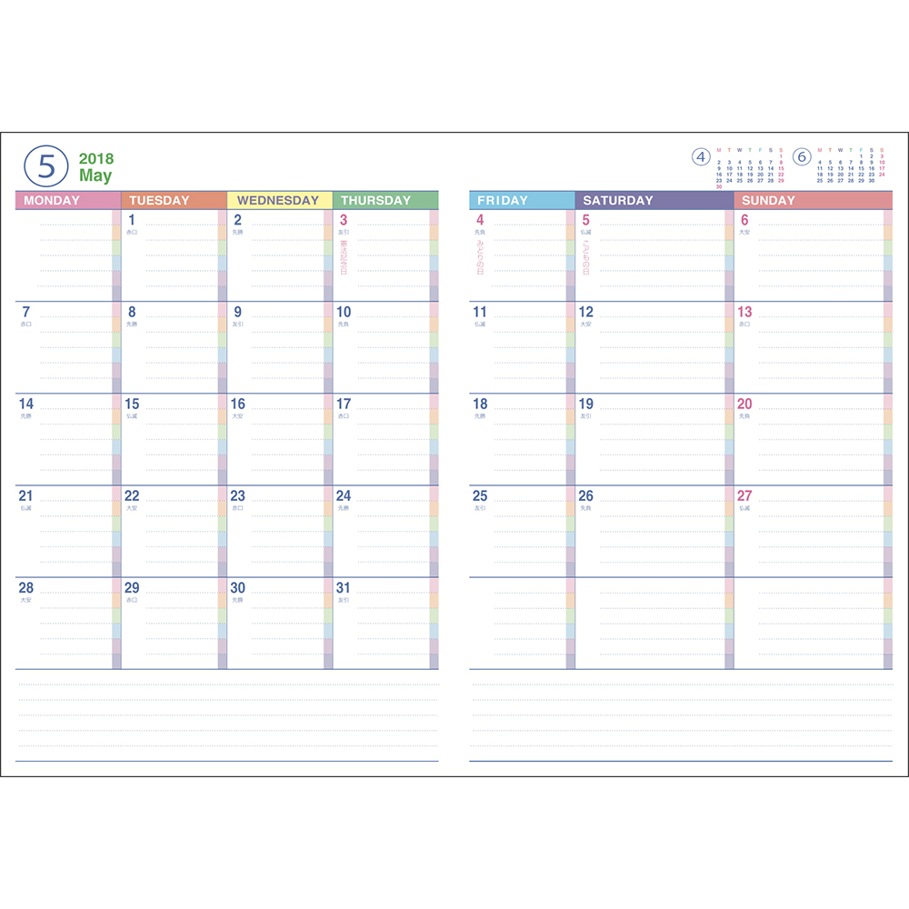 カラーダイアリー 2018 A6 ピンク