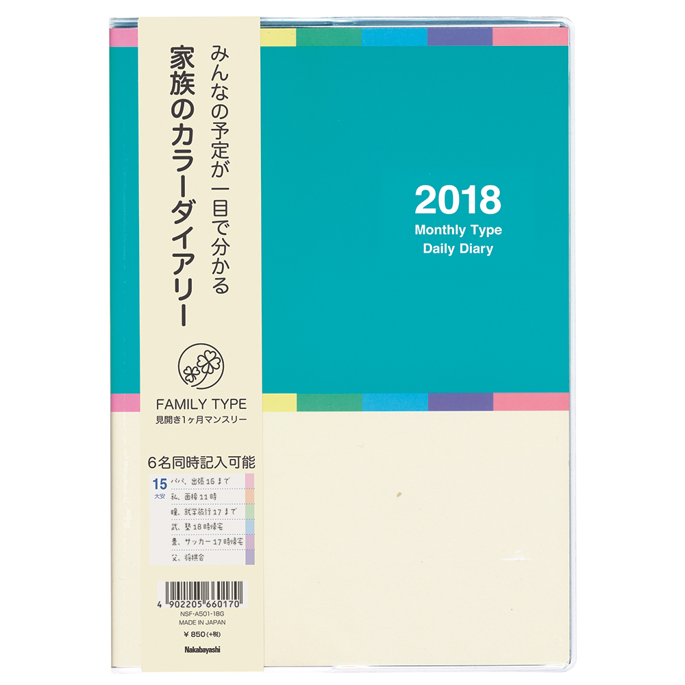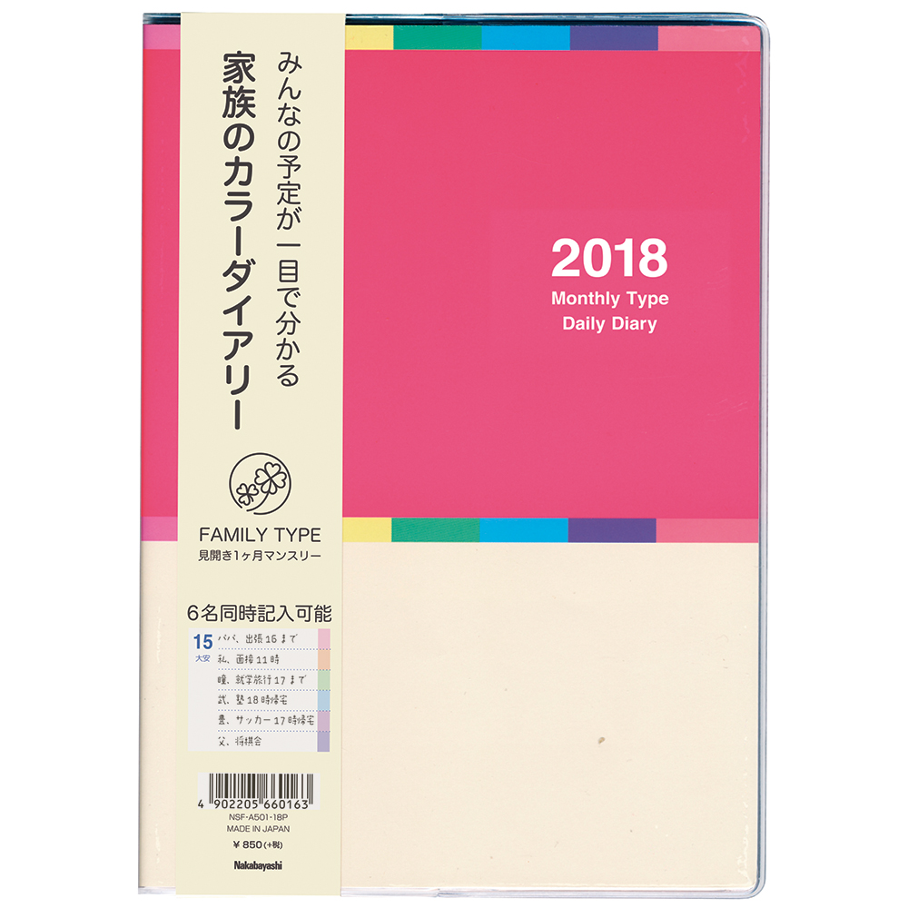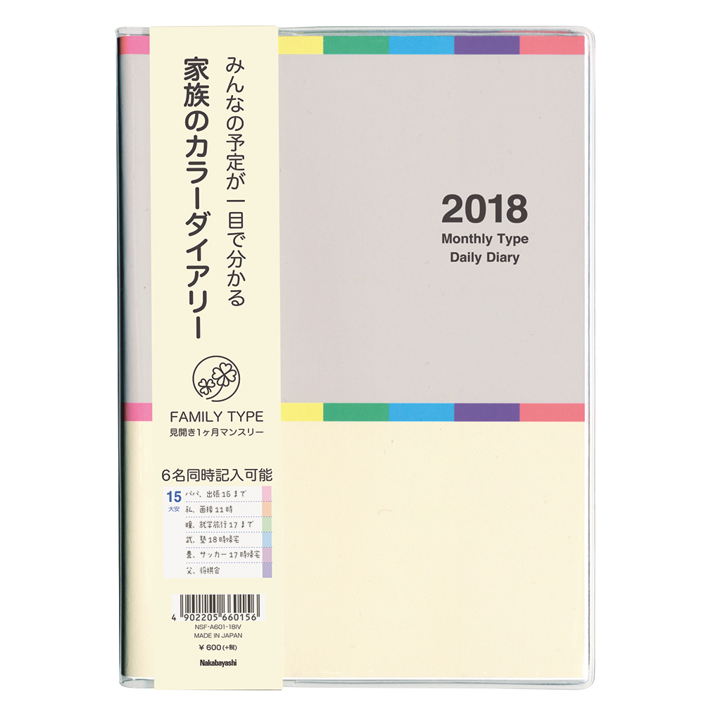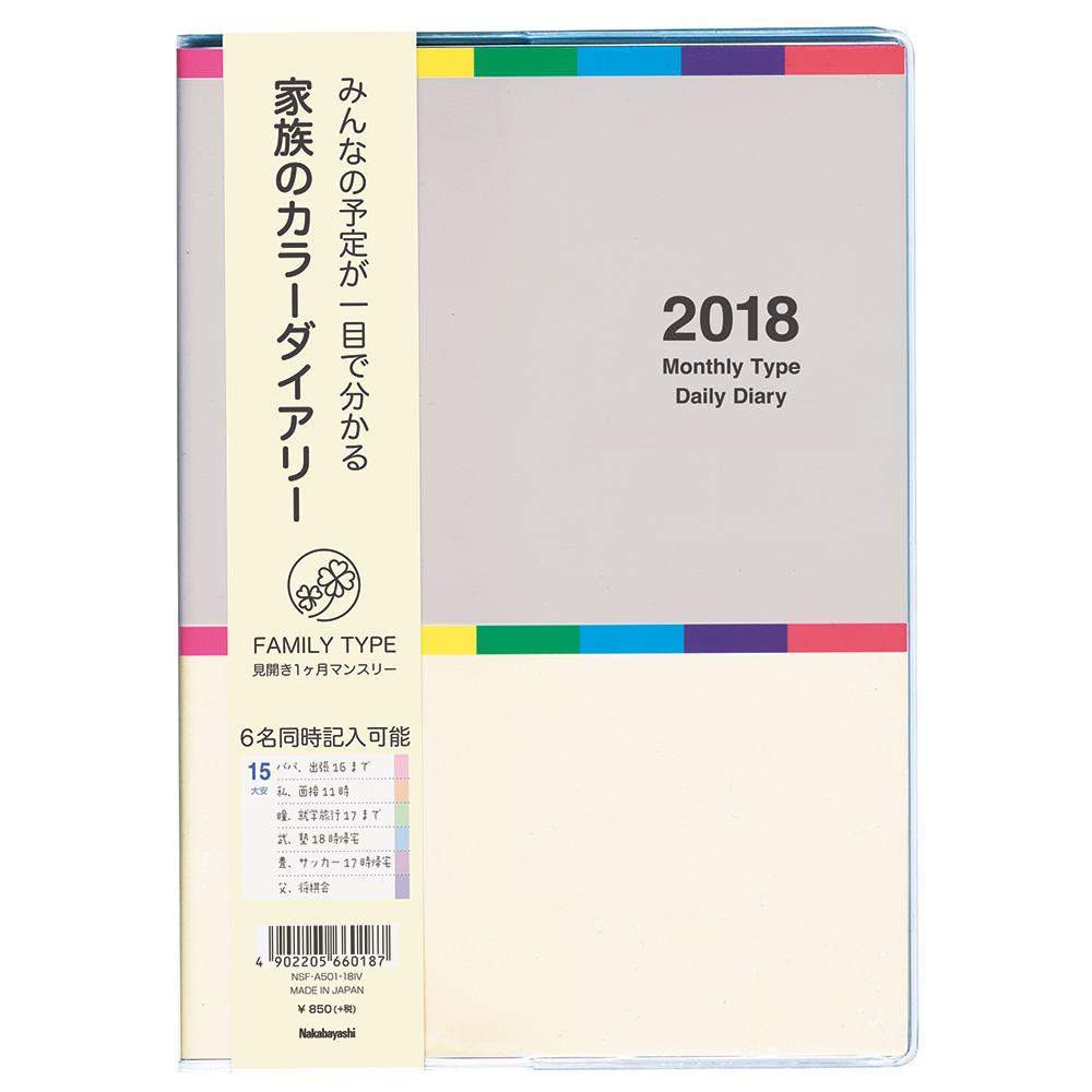 カラー分類で家族の予定をひとめでわかりやすくまとめることができます。
