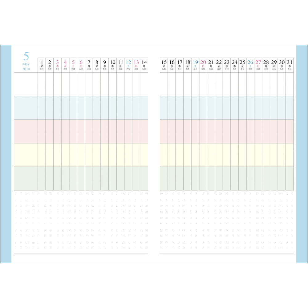 最大5人分の予定が書き込める様に各項目が色分けされているので家族の予定も一目でわかります。