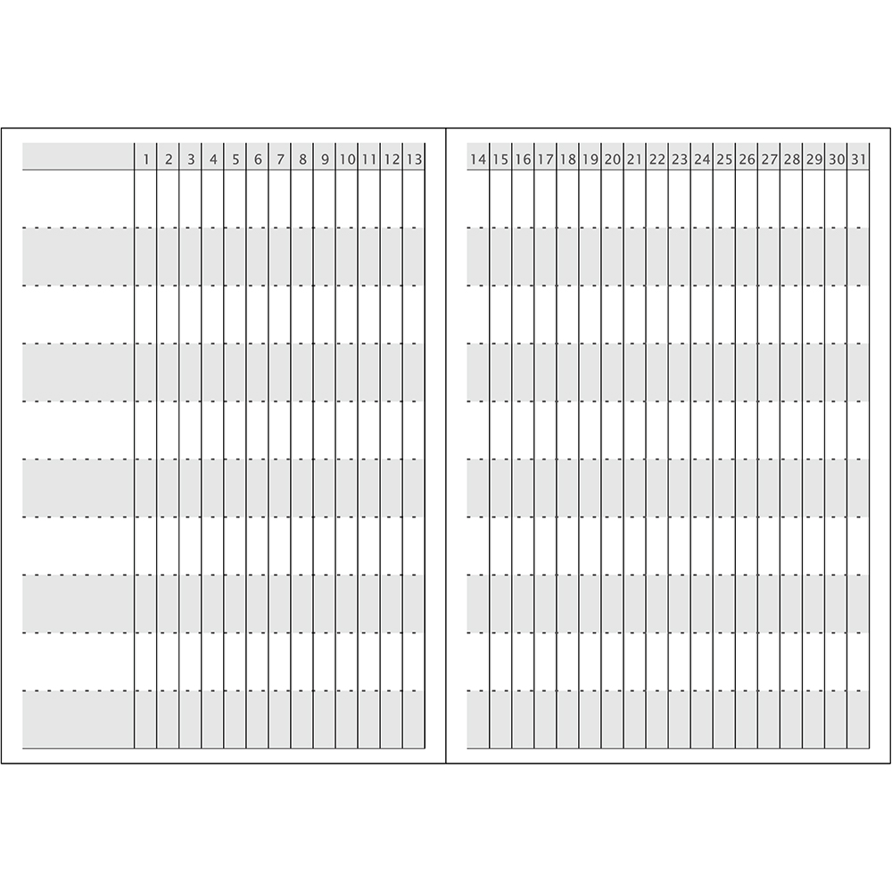 マンスリーページは2か月の予定を一目で確認できます。ウィークリーページは予定が分かりやすいシンプルな3分割レイアウト。ガントチャートは月の印字なしなので予定の多い月でもタスク管理しやすくなっています。