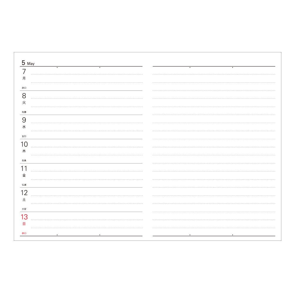 | 本文 | 手帳用紙(白)・208ページ(しおり2本付) |