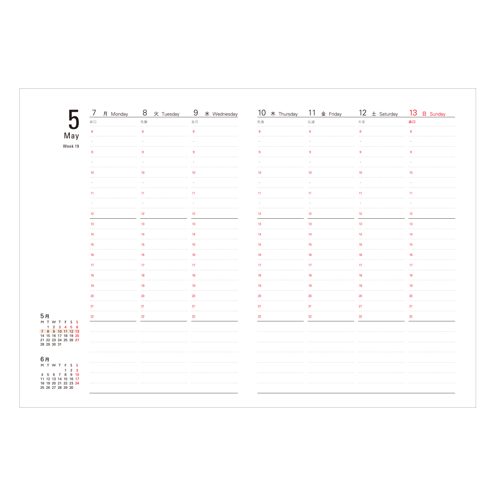 時間単位でスケジュールを管理。A5サイズのバーチカルタイプ