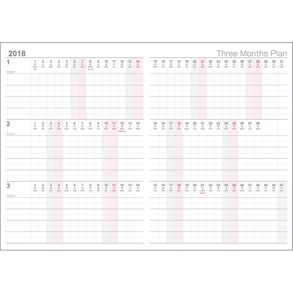 3か月で1冊なので持ち運び便利(計4冊)その日の予定や出来事を何でもたっぷり書ける1日1ページ。広いスペースを自由に使えます。別冊マンスリー付きなので月の予定を確認しながら、日々の出来事を書き込めます。
