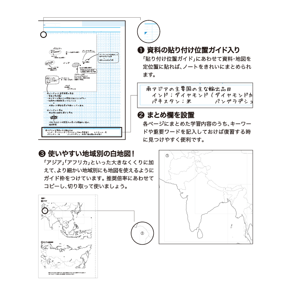 ノートに貼って効率的に学習できる推薦倍率付きの世界地図付録(地域別白地図)