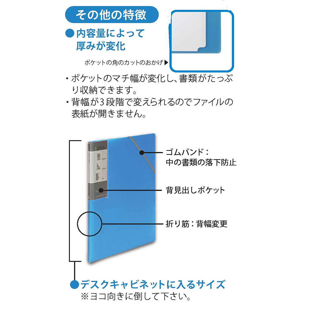 | ポケット | A4ワイド・4ポケット・ポリプロピレン厚み約0.16mm・インデックス付き |