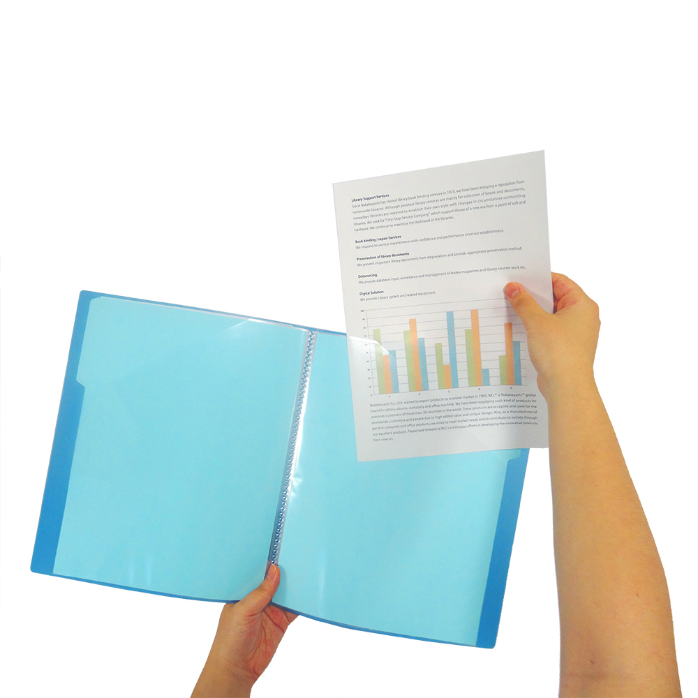 スルっとかんたん書類の出し入れ!ななめカットのポケット形状のクリアブックです。