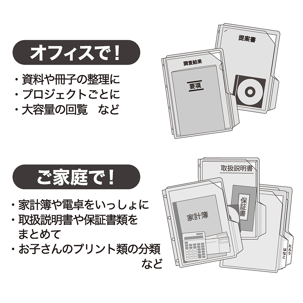 なんでも手軽にまとまる。どっさり個別Dリング専用ファイルをそのまま保管できます。