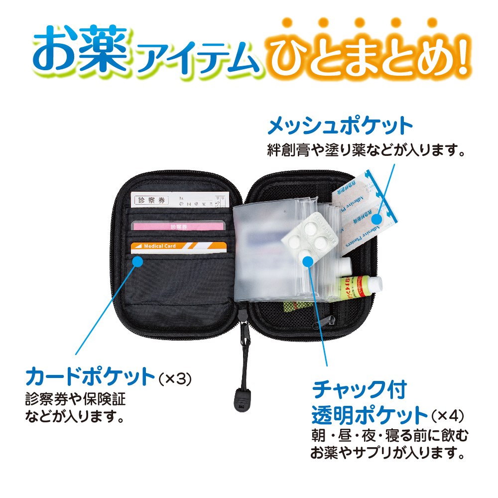 おくすりまわりのアイテムをひとまとめに収納できます。