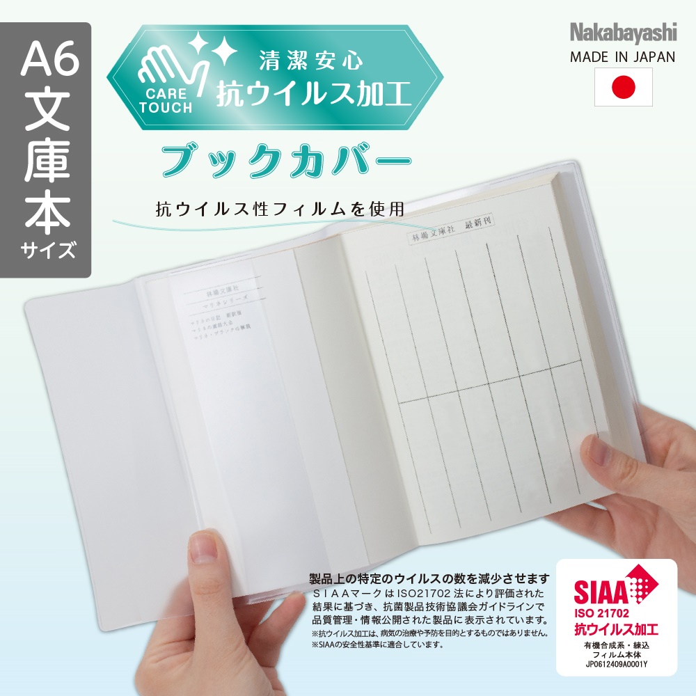 SIAAの認証を受けた抗ウイルス加工のフィルムを使用したブックカバー。