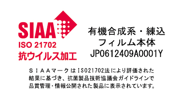 抗ウイルス加工は病気の治療や予防を目的とするものではありません。