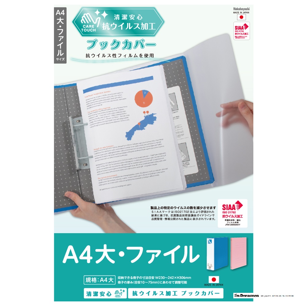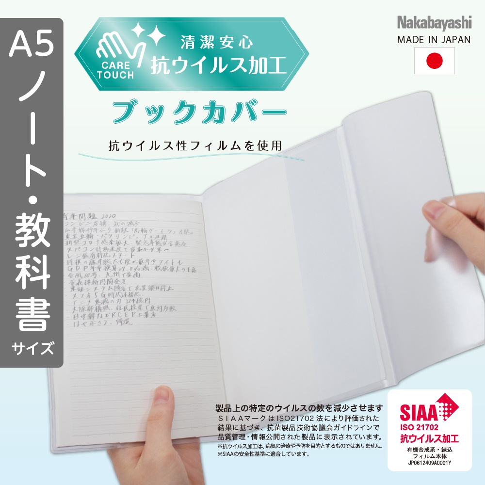SIAAの認証を受けた抗ウイルス加工のフィルムを使用したブックカバー。