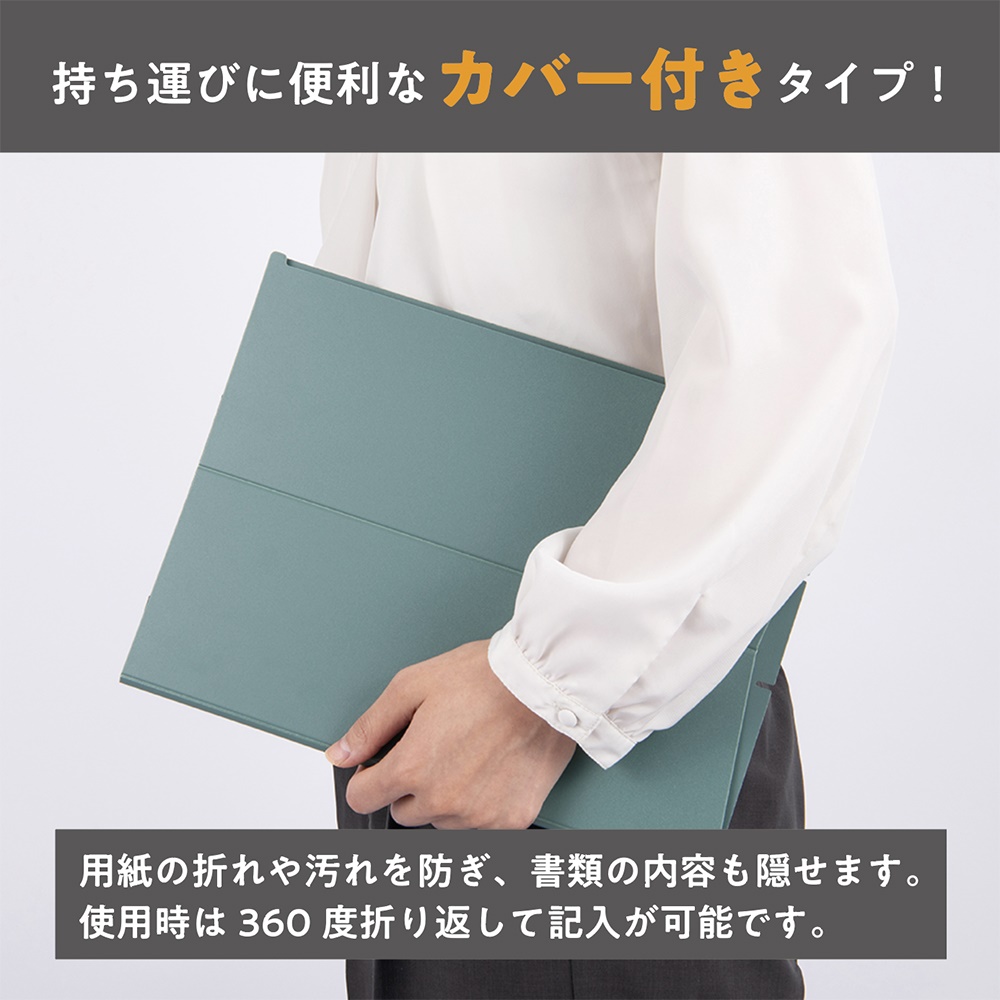 カバー付きのため、書類の折れや汚れを防ぐことができます。