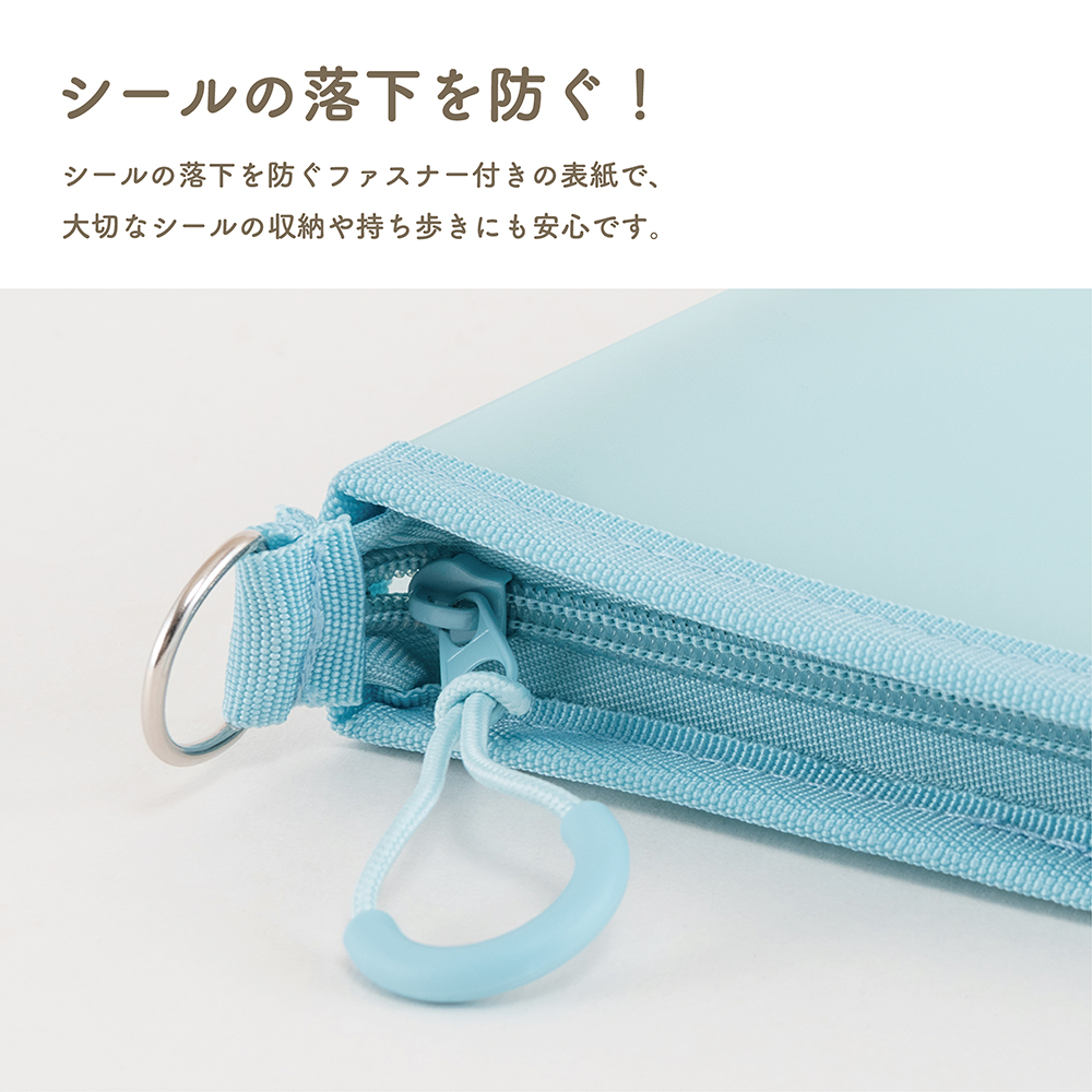 シールの落下を防ぐファスナー付きの表紙なので、大切なシールの収納も安心です。