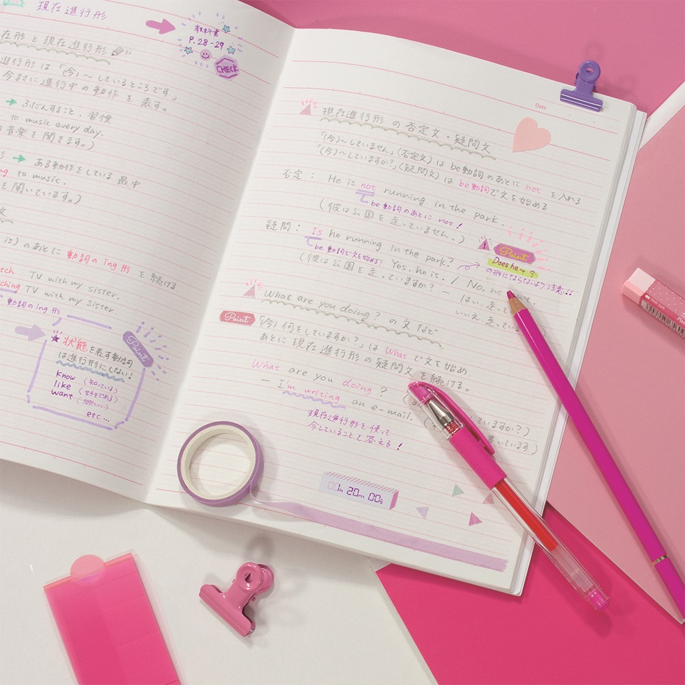 勉強内容や日々の記録を、SNSなどに投稿するニーズに合わせ、デコレーションシールを2ページ分付属しています(ノートから切り取れるミシン目入り)。まとめノートづくりや、表紙のデコレーション、科目内容の記入などにお使いいただけます。