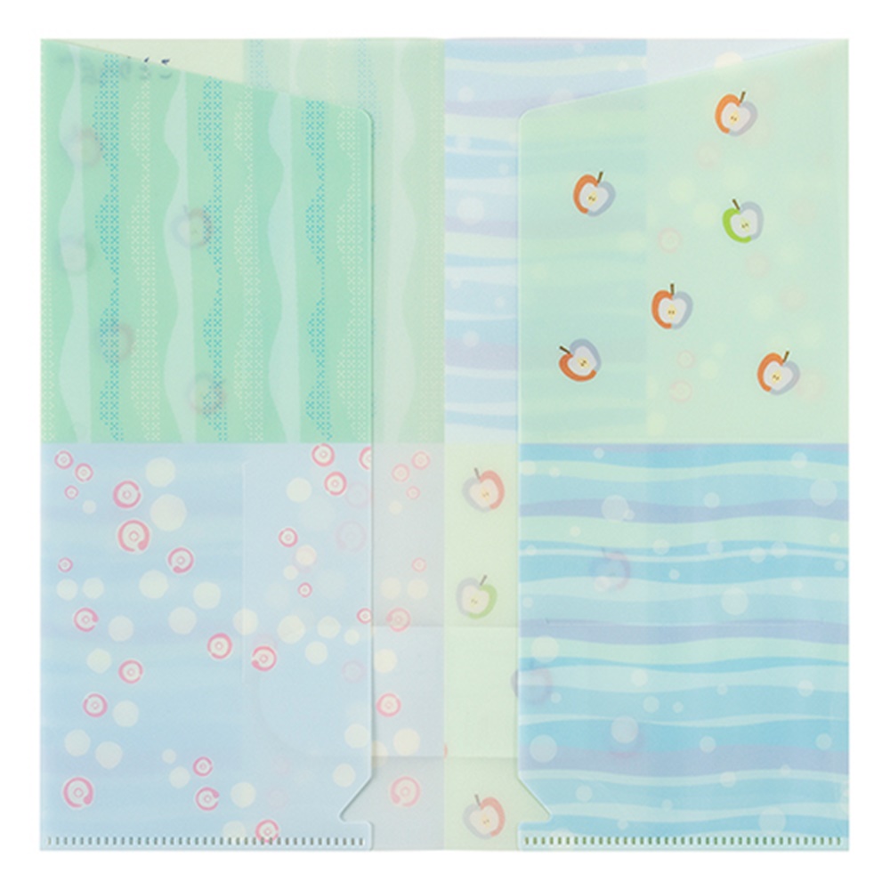A4用紙を3つ折りで収納できるほか、内側のスリットにカードや小さめのチケットなどを差し込むことができます。