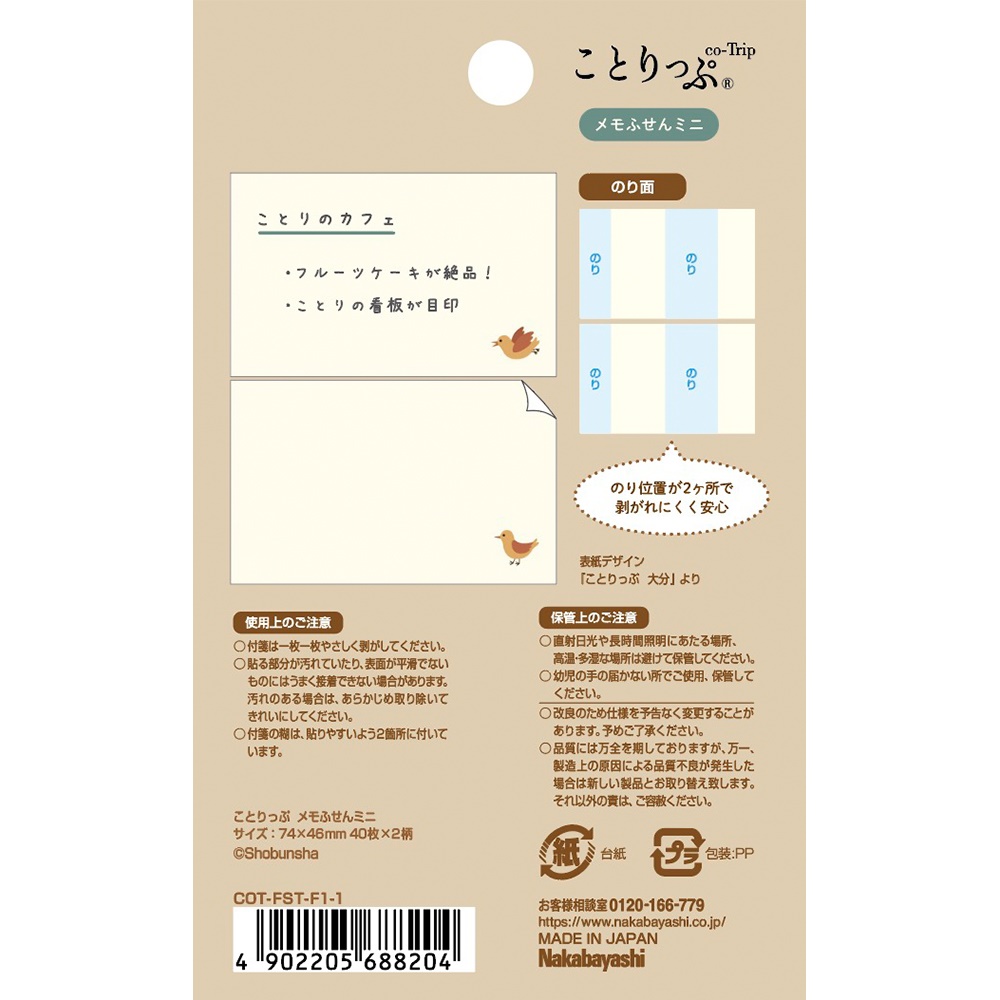 製品名/品番 ことりっぷ 付箋 メモミニ / COT-FST-F1 価格 480円+税 ラインアップ 1、2、3