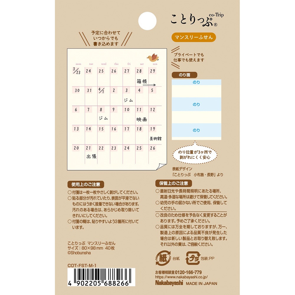 ことりっぷ×付箋 80×98mm マンスリー 1