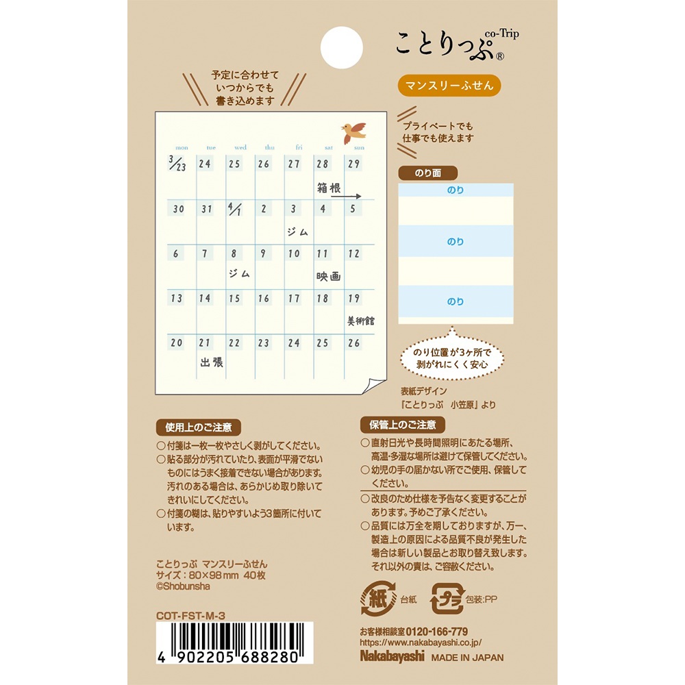 ことりっぷ×付箋 80×98mm マンスリー 3