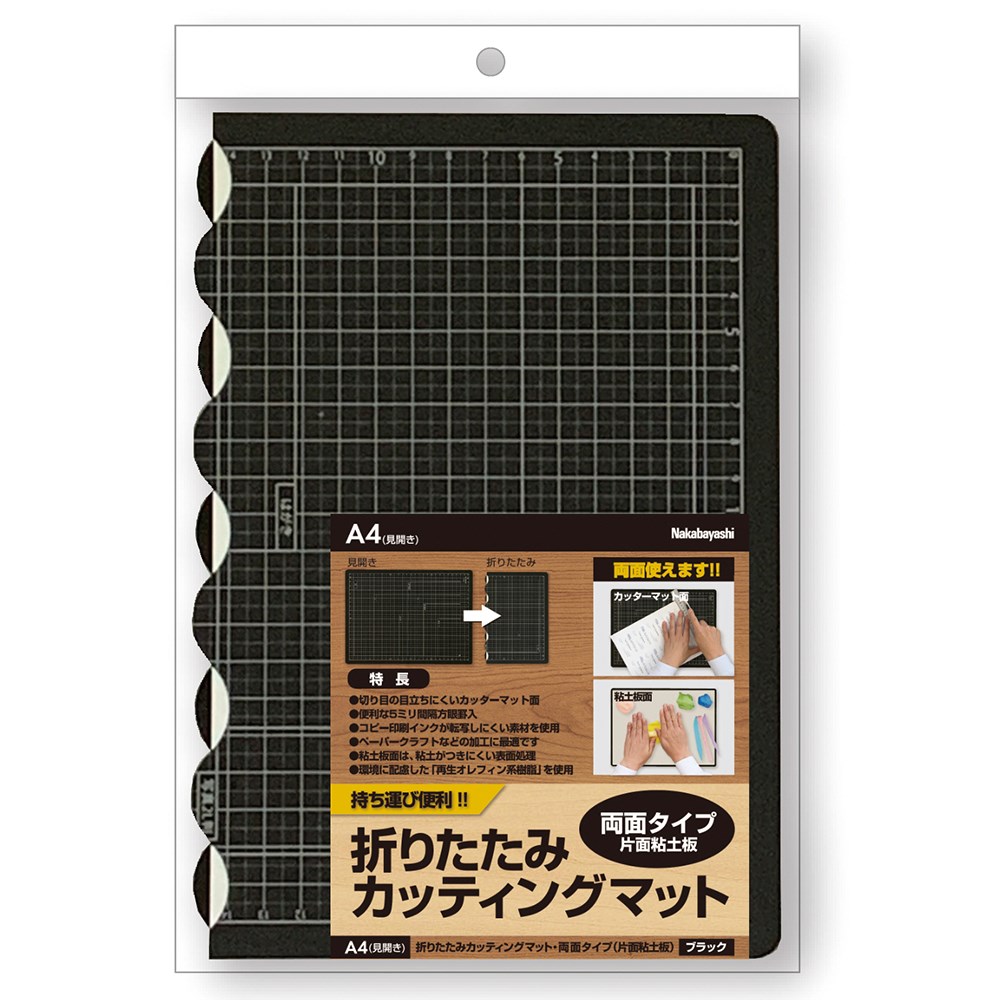 折りたたみカッティングマット 両面タイプ・片面粘土板・A4/ブラック