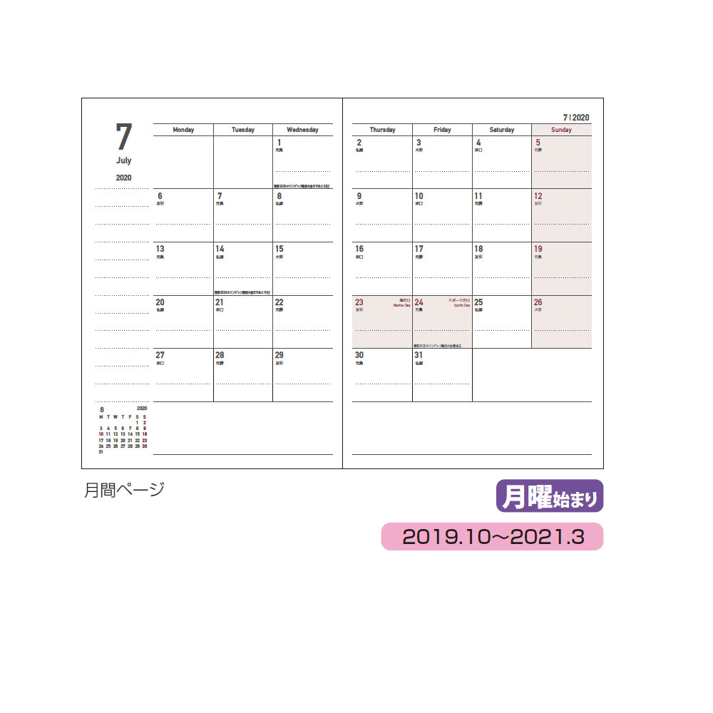 マンスリー2019年10月〜2021年3月+充実したメモ欄。