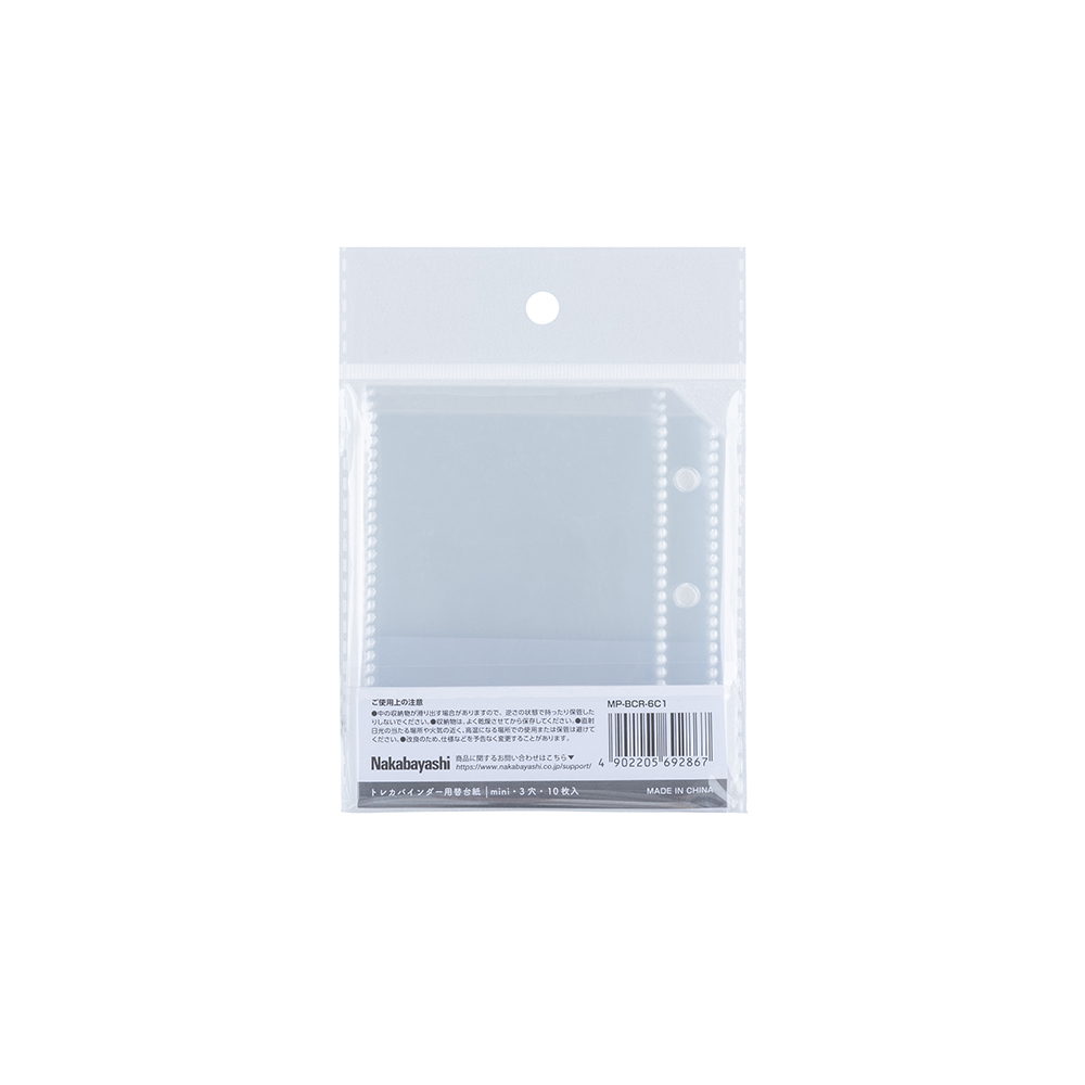 | 専用替台紙 | 製品名:my Pickトレカバインダーmini替台紙(MP-BCR-6C1) 価格:180円(税込198円) 仕様:トレカサイズ1ポケット・10枚入・透明・片面収納 リフィルサイズ:タテ103×ヨコ88mm 収納可能サイズ:タテ97×ヨコ68mm |