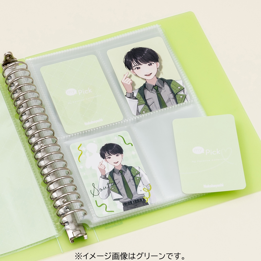 カラーはレッド、イエロー、グリーン、ブルー、バイオレット、クリアまたはホワイトの6色展開です。表紙は、バインダータイプには透けてカスタマイズ可能なクリアカラー、ブックタイプには中身が見えないミルキーカラーを採用しました。推しのメンバーカラーや、キャラクターのイメージカラーなどに合わせて選ぶことができ、お気に入りのトレカや写真を1冊に集められます。