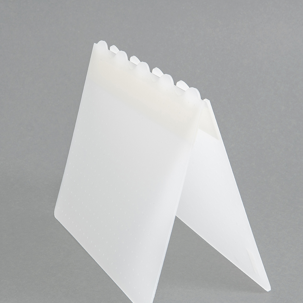 カッティング面はキズが目立ちにくく、波型の折り目も気にならないフラット設計になっています。 盤面には、直角がわかりやすい格子罫線と、邪魔にならないドット罫線をいいとこどりをした「十字罫線(1cm間隔)」を採用しました。必要最低限のデザインでありながら、水平・垂直の位置が取りやすく実用性も抜群です。