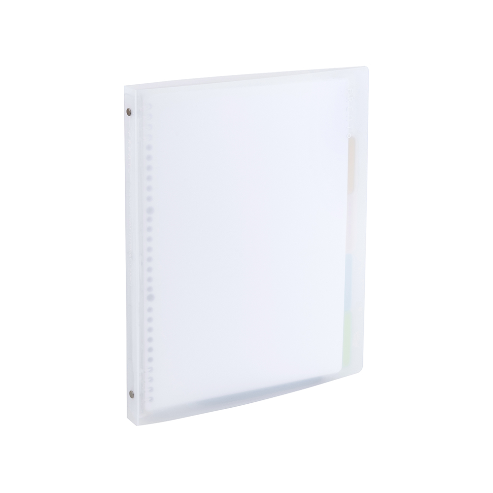フレントは科目や項目などの分類に便利なPP製のインデックスシート5山と、未使用のルーズリーフや資料などを収納できるPP製フリーポケット1枚が付属しています。 また約20mmのスリムな背巾でありながらルーズリーフを最大70枚まで収納することができ、複数教科もこの1冊にまとめられます。
