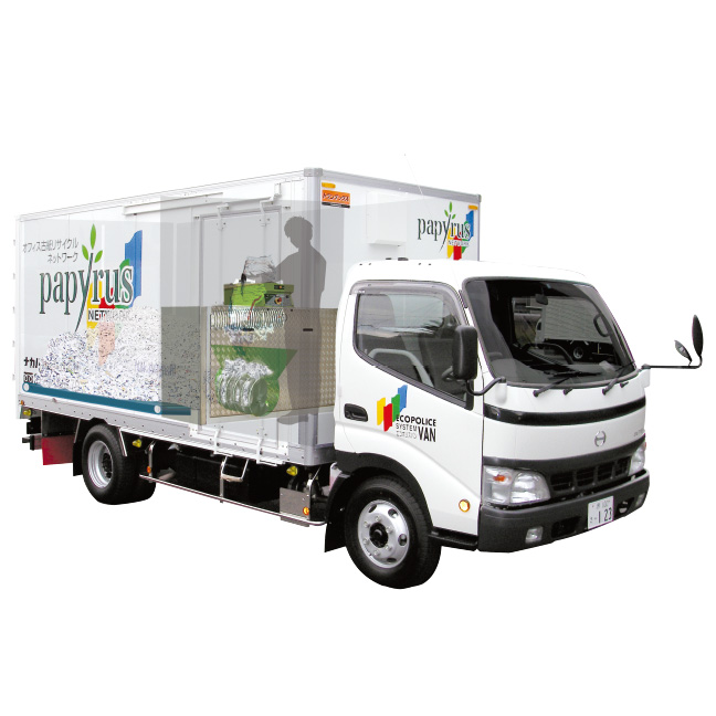 大型シュレッダ搭載車がお客様の元へうかがい、目の前で機密文書を細断!