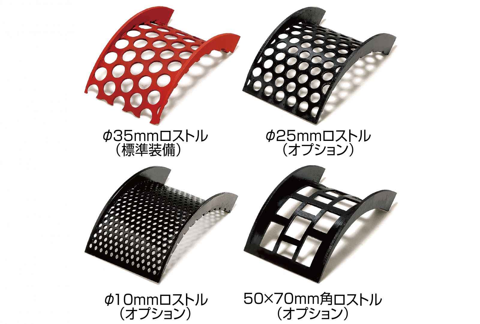 粉砕物排出口に設置されたロストル(スクリーン)の穴径を変更することにより、粉砕物のサイズ調整が可能です。 |