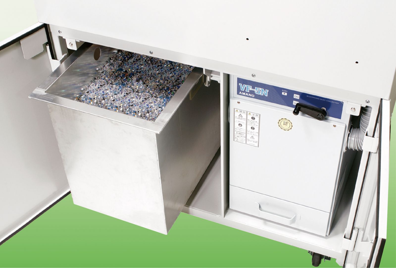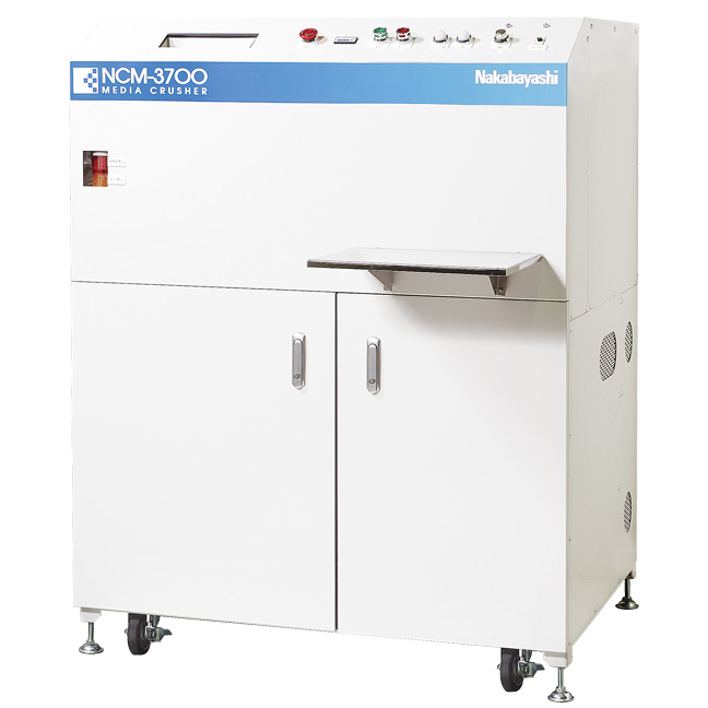 | 粉砕可能物 | 【光学式記録媒体】CD、CDケース、DVD、Blu-rey Disc、MO 【磁気式記録媒体】マイクロカセット、DAT、DDS、CMT(CGMT)、DLT/SDLT、LTO、8mmビデオテープ、フロッピーディスク(3.5インチ)、ZIP 【ハードディスク】2.5インチ(3.5インチはディスクのみ)【フィルム】ネガ/ポジ、レントゲン、マイクロフィッシュ 【その他】携帯電話、基板、フレキシブル基板、半導体、記録メディア、各種カード類 |