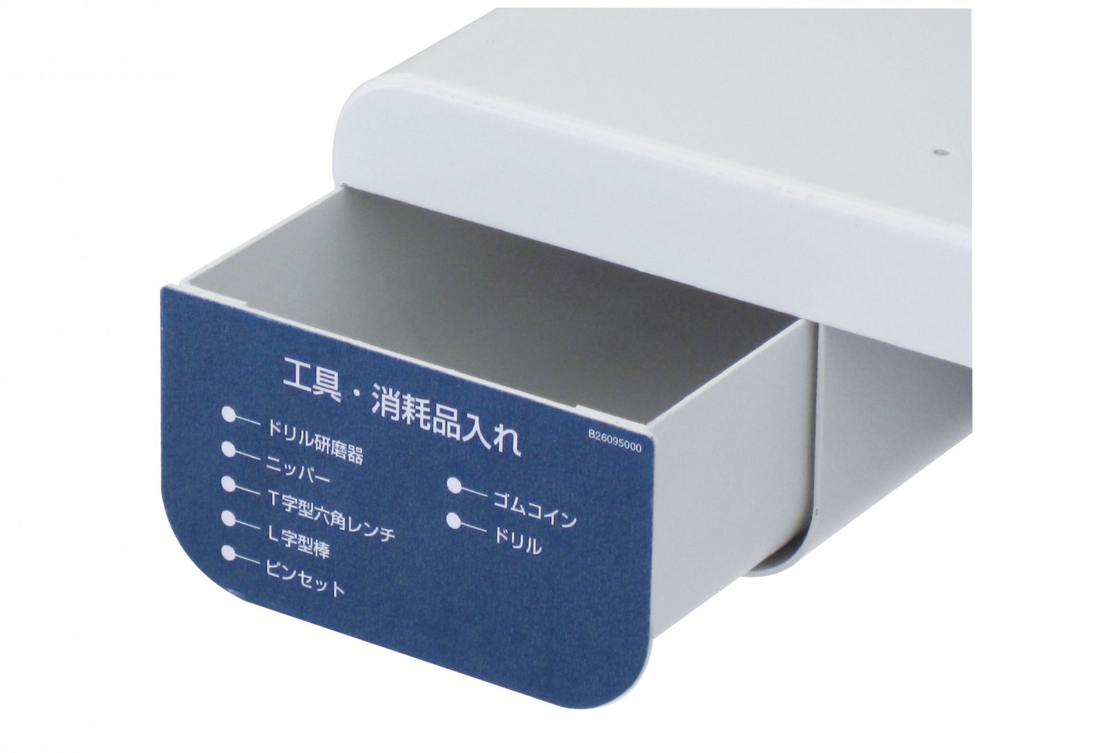 工具、消耗品の収納に便利な引き出しケースがテーブル下部についています。工具の紛失防止や消耗品の管理に役立ちます。 |