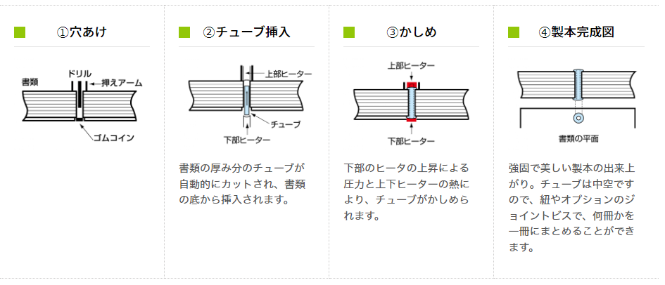 穴あけから製本までの所要時間は約30秒。(1穴)