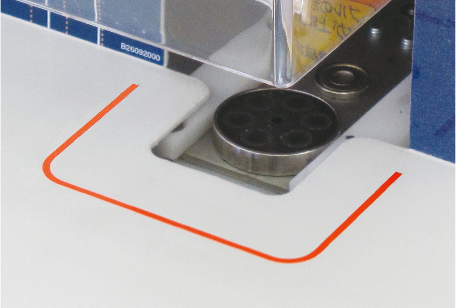 穴をあける度に、ゴムコインが自動的に回転。ゴムコインの位置変え作業が自動的に行えます。 |