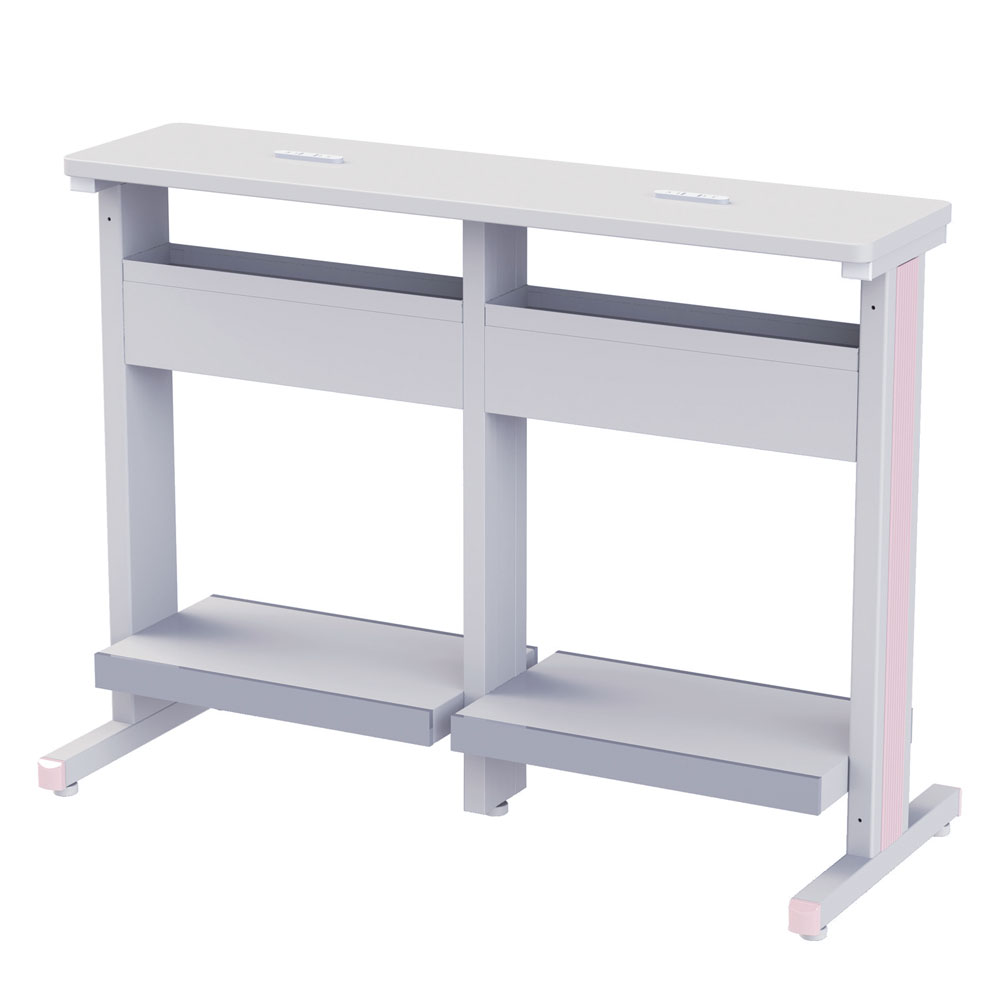 ●底板トレーは取り付け方向を変えることで、棚板や トレーとしても利用することができます。●PCの電源取りに狭いスペースでナースカートが整列できるステーションタイプです。