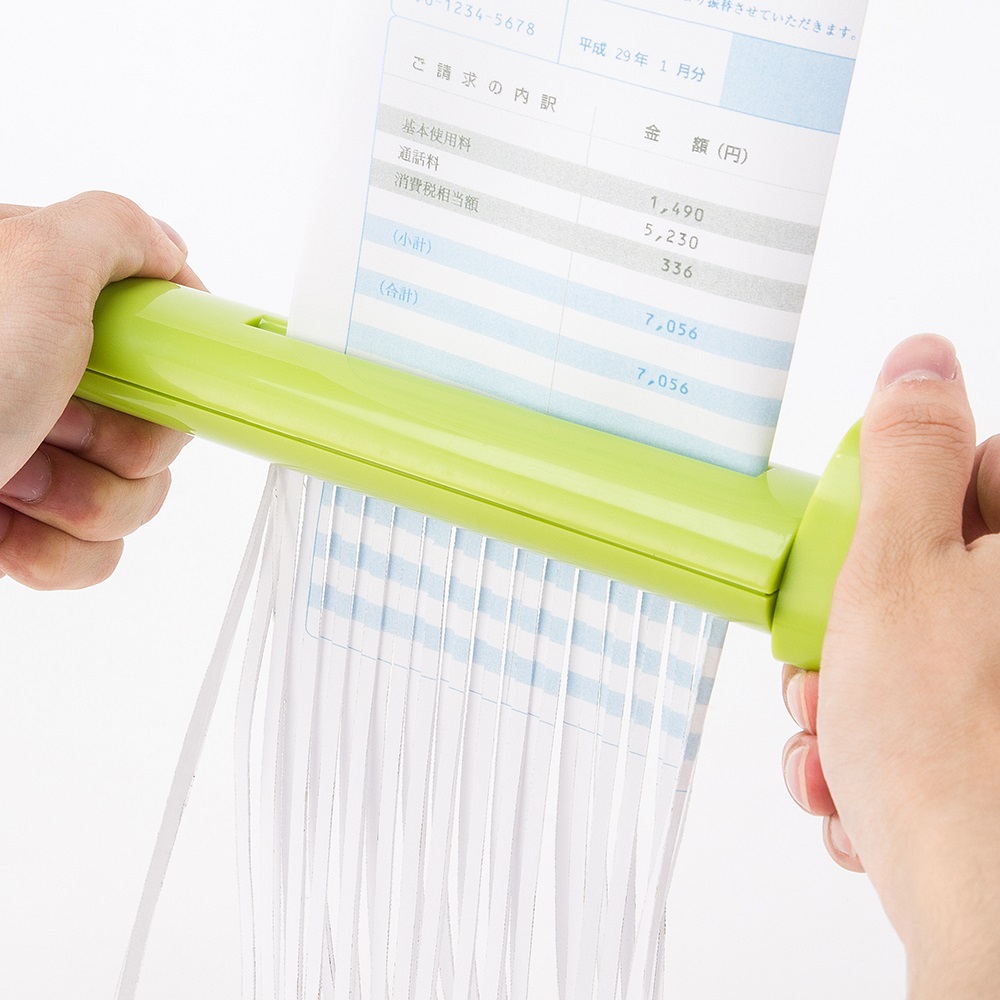 | 細断枚数 | 紙/2枚(A6上質紙64g/m²) 紙/1枚(A4上質紙64g/m²縦二つ折り) 郵便はがき/1枚(209.5g/m²) |