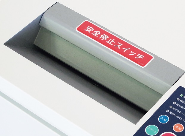 紙詰まりが生じた際など、紙を引き抜く時に投入口の隙間が自動的に拡大します。 - 安全停止スイッチ