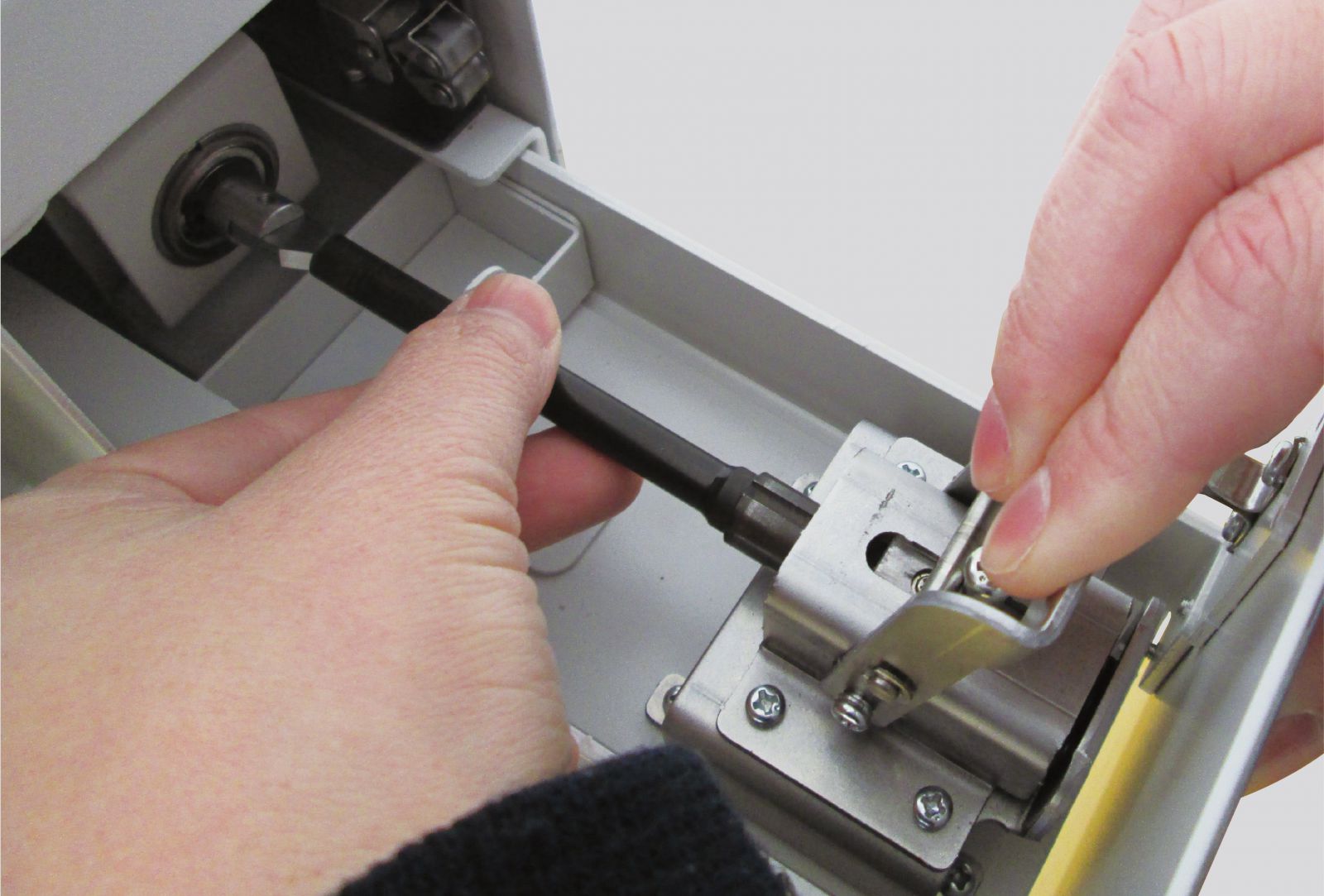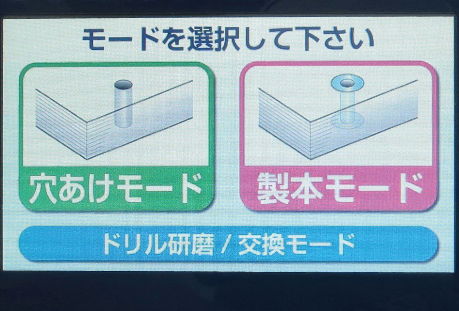 ドリルの破損や製本異常を防止する上で、ドリル研磨は重要です。画面表示に従ってドリルを自動研磨機にセットするだけで、後は自動で研磨ができます。 |