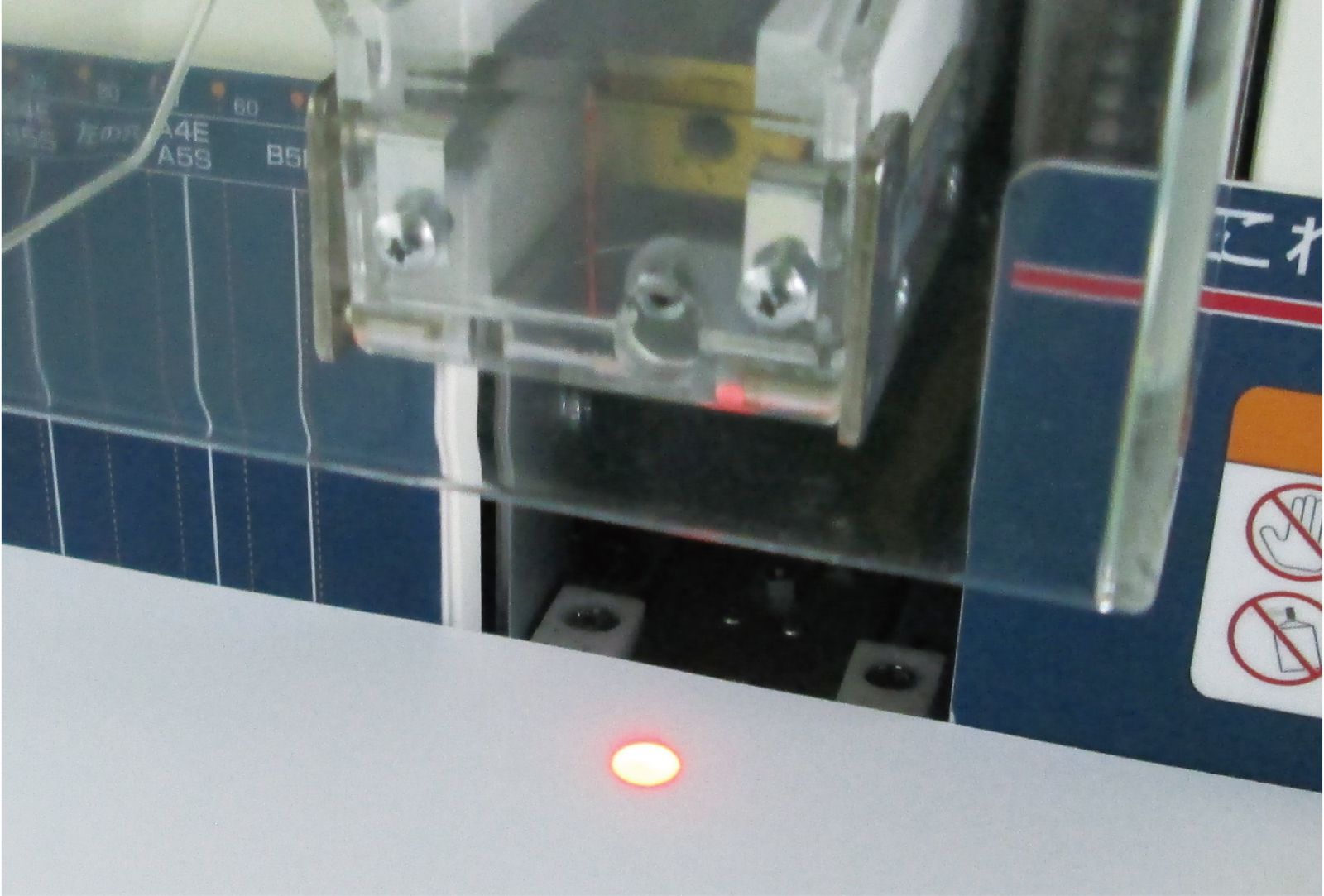 ビームランプが綴じ位置を表示してくれるので、思い通りの場所を綴じることができます。 |