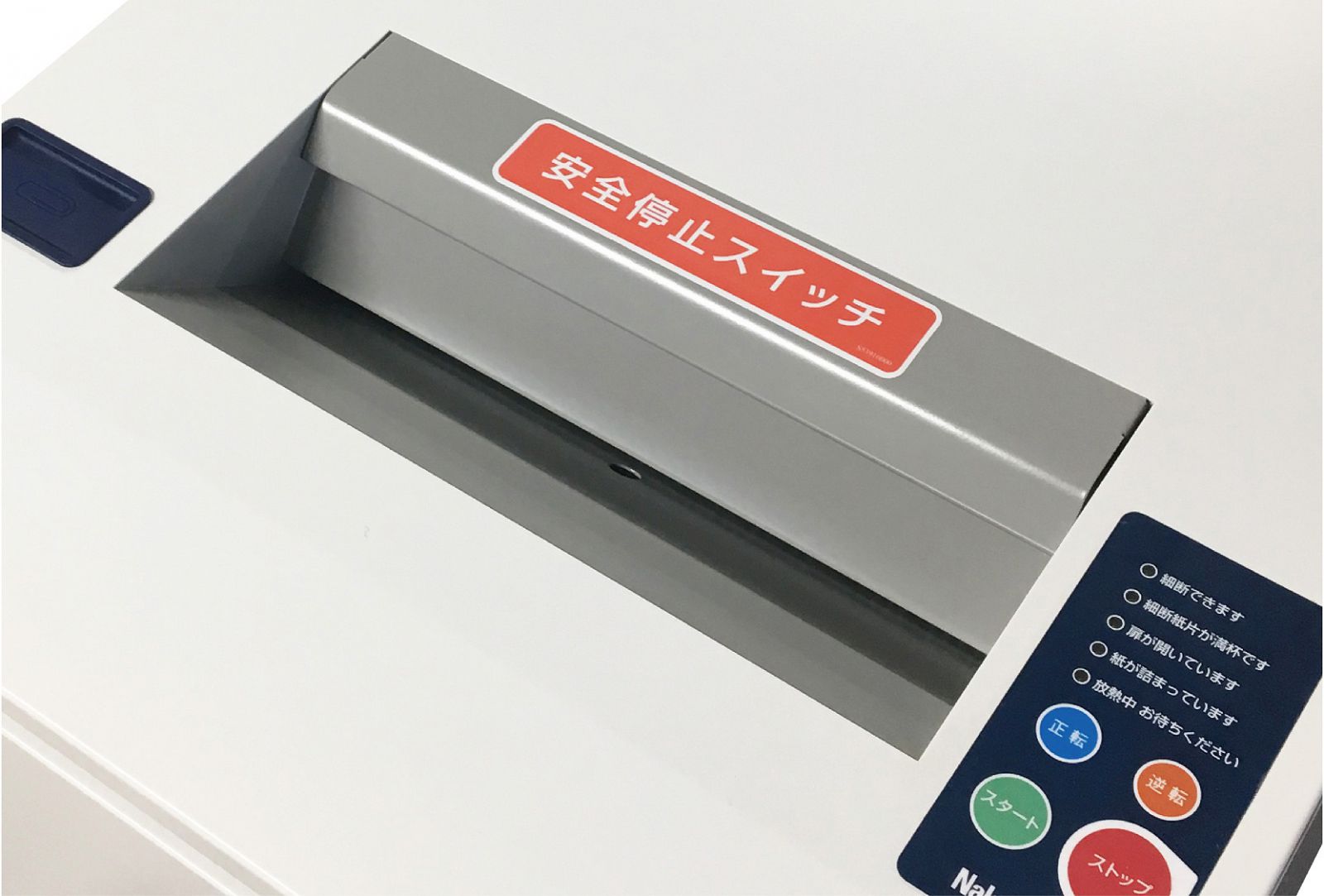 紙詰まりが生じた際など、紙を引き抜く時に投入口の隙間が自動的に拡大します。 - 安全停止スイッチ