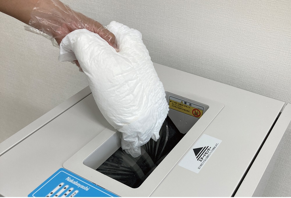 フィルムでパックすることで、使用済み紙おむつからの気になるニオイ漏れ・細菌の拡散を防止し、衛生的に処理ができます。 |