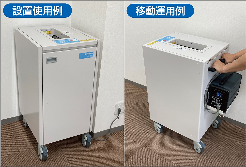 オプションのポータブル電源用トレイを取り付けポータブル電源を設置することで、移動しながら運用することも可能です。 ※ポータブル電源及びトレイは製品に含まれておりません。 |