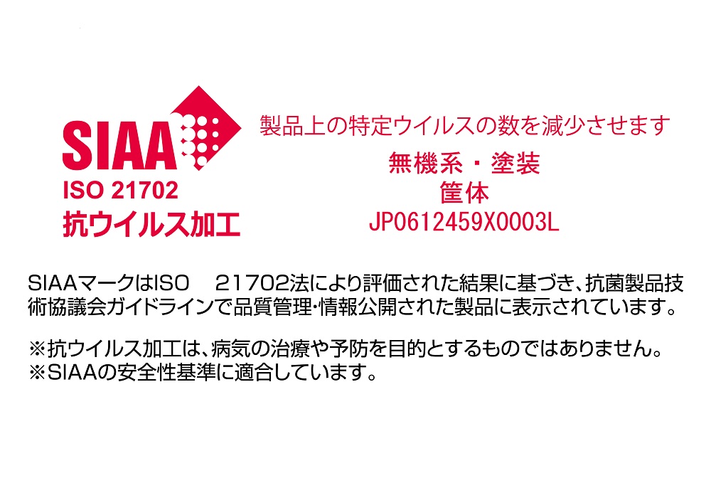 筐体の塗装には抗ウイルス粉体塗装を採用しており、製品を清潔に保つことができます。