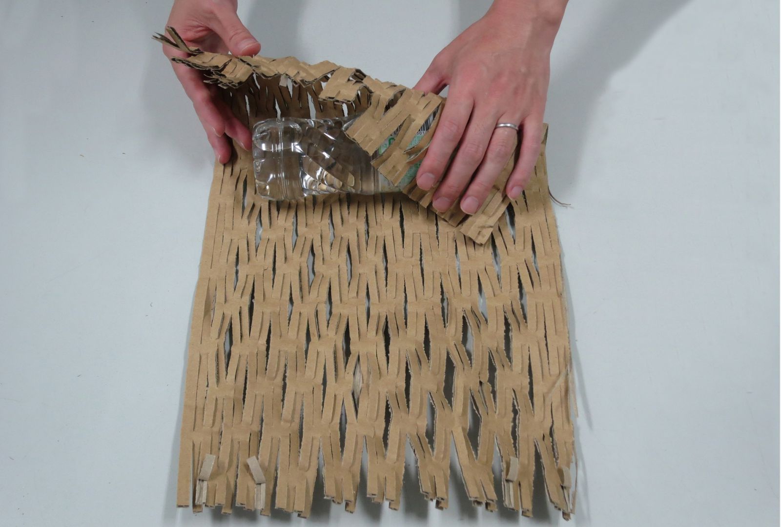 カットされた緩衝材は網目状に広がります。柔軟性があり、幅広い用途に使えます。 |