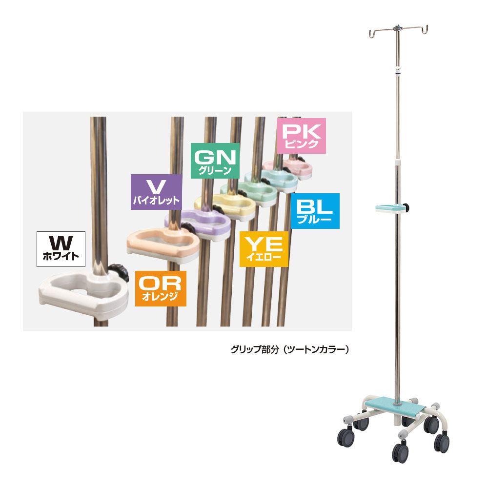看護時の安全と患者への配慮。●カラーは13色パターン(グリップとベース色は共色)の中から受注時に選択できます。弊社営業相談対応になります。