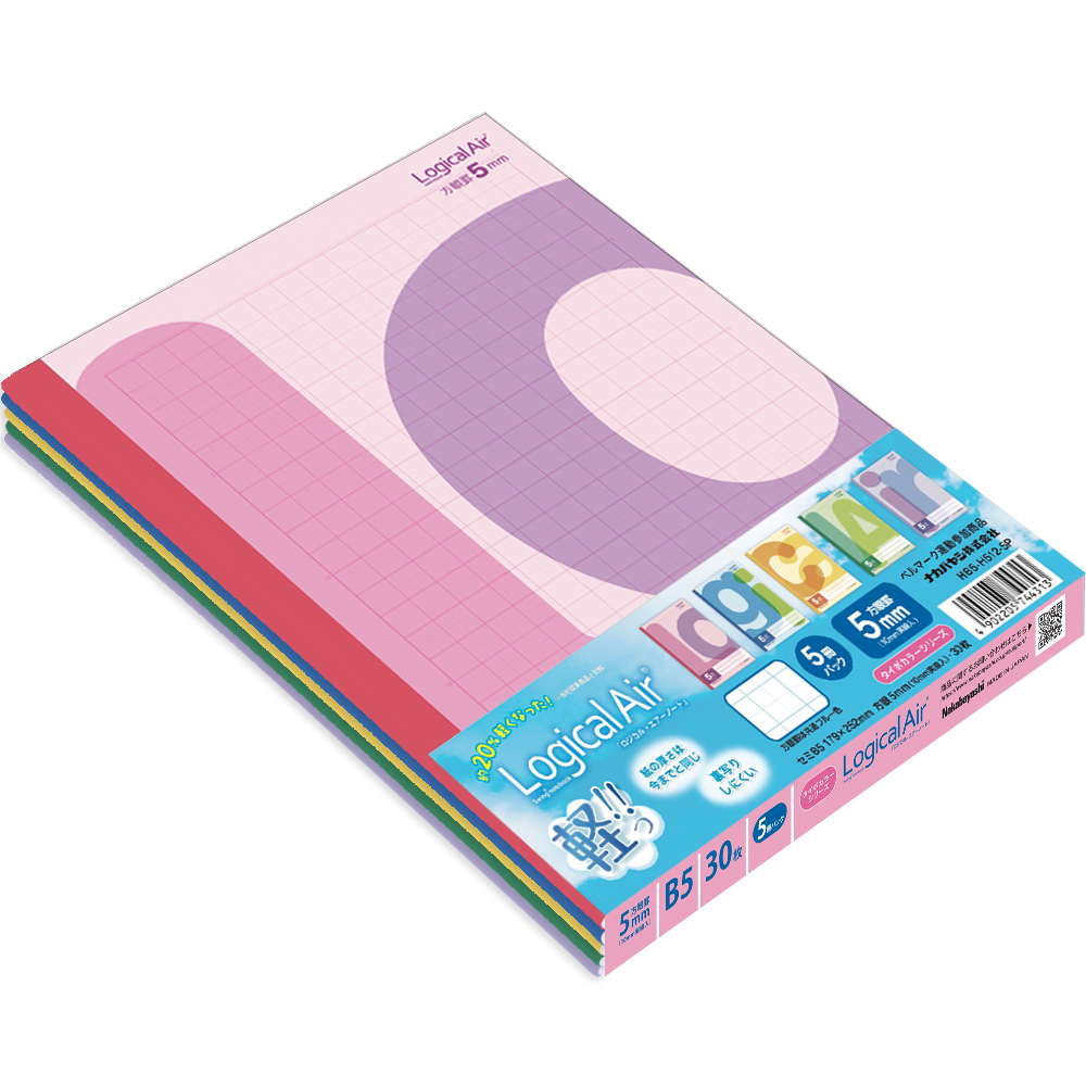 ロジカル・エアーの英字の書体をポップに表したカラフルなデザイン。明るいカラーがロジカル・エアーのイメージにぴったりなノートです。5色にわかれているので、科目ごとにノートを使い分けることができます。