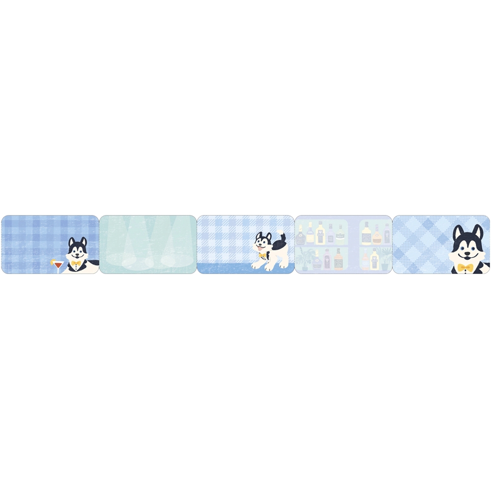 恋多き紳士な犬たち『GentleDogs』シリーズのロール付箋です。バーであの子をイメージしたカクテルを持つハスキー