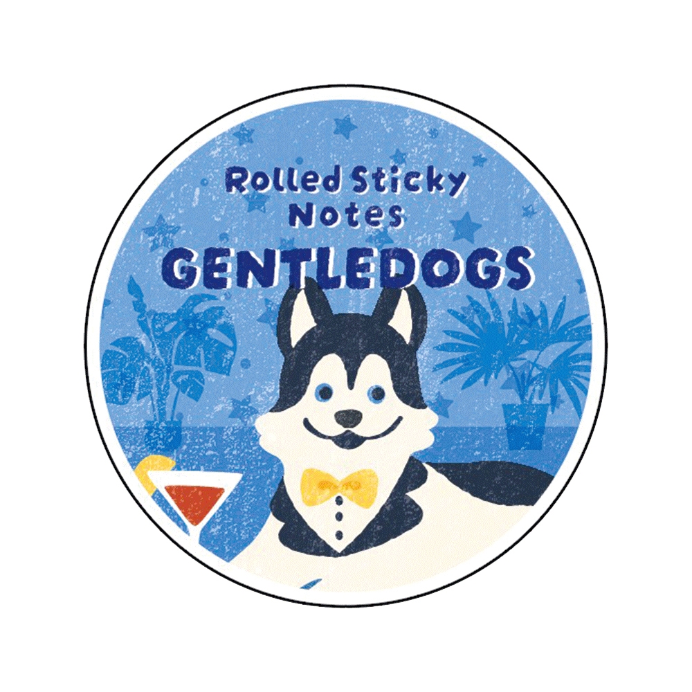 「ロール付箋」はナカバヤシオリジナルイラストの「GentleDogs」、「おっきいあにまる」を採用した全面のり付箋です。GentleDogsのラインアップはブルテリア、シュナウザー、コーギー、ハスキーの4犬種。おっきいあにまるはあざらし、ねこ、かば、犬をラインアップしています。